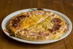 paradicsomszósz, bacon, sajt