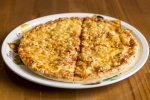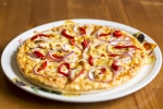 barbecues szósz, sajt, pirított pulykacsíkok, pritamin paprika, kukorica, lilahagyma, mozzarella sajt