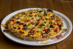 paradicsom alap,vöröshagyma, csilis bab, kukorica,brokkoli, sajt, jalapeno