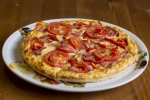 paradicsomszósz, sonka, szalámi, sajt