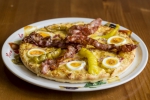 tejföl alap, bacon, tojás, sajt, édes pfefferóni