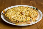 paradicsomszósz, gomba, borsó, kukorica, sajt