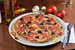 paradicsomszósz, gomba, sajt, olívabogyó